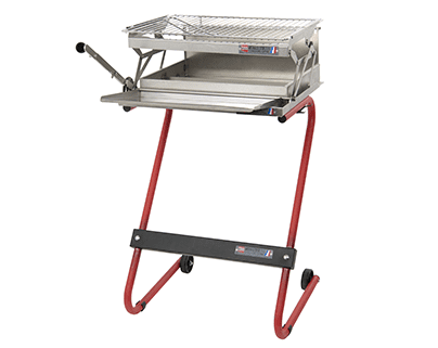Barbecue MFOG avec chariot New Line pour une utilisation en hauteur sans bâti ni cheminée.